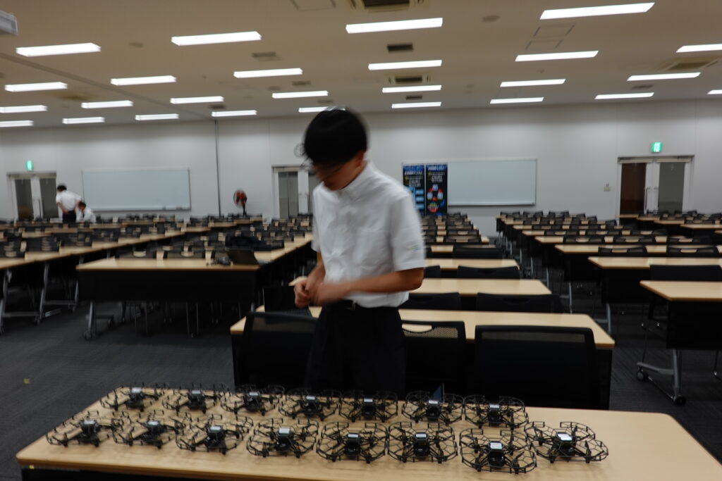 ドローンショーでは学校にあるドローン30台を使用し、地域の方々に