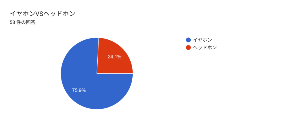 音楽系の活動をしている部員はヘッドホンを使っている人が多いですが、普段使い用にはイヤホンのほうが使いやすいため、イヤホン派が優勢となりました。